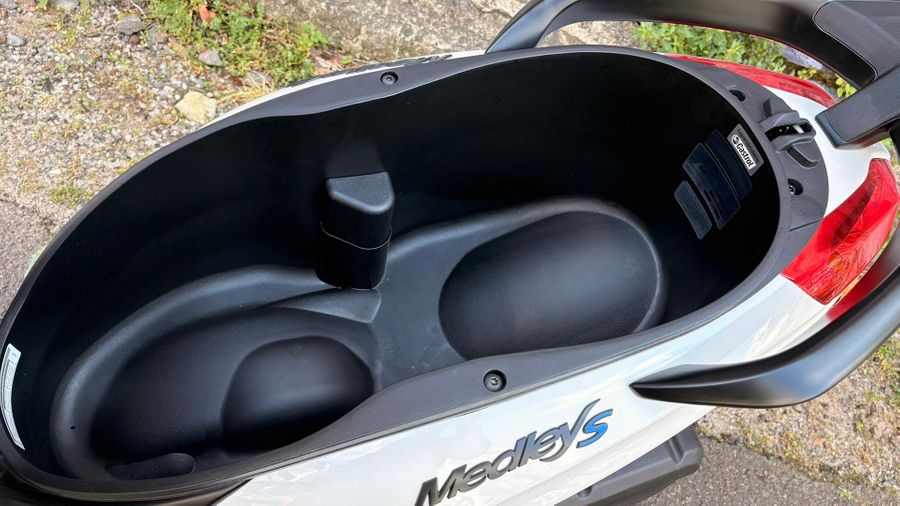 The Piaggio Medley continues to impress with its practical aspects, such as the fact that despite its compact size, it boasts unrivalled storage capacity.