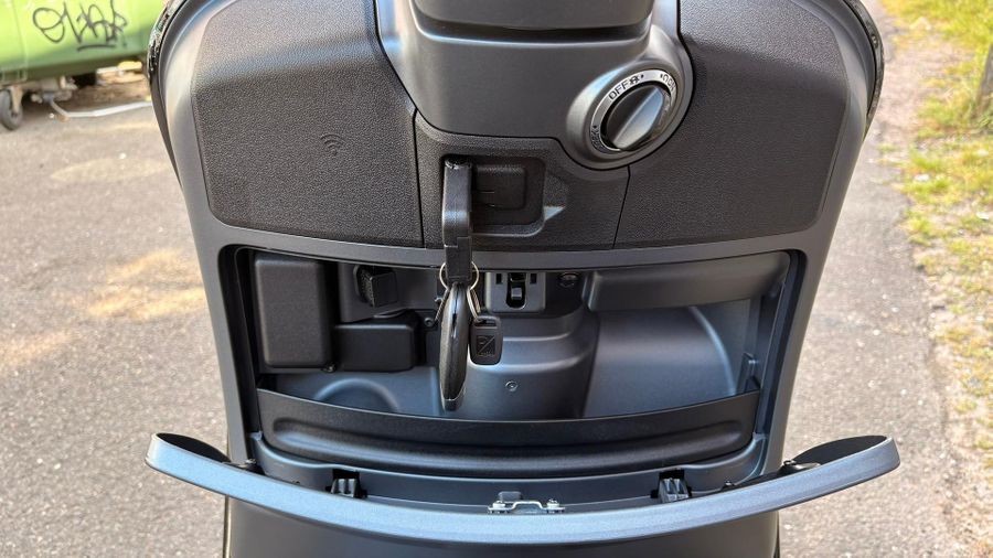 There are plenty of additional touches and sporty-style graphics, while its comfy seat is upholstered in high-quality material with contrast stitching. - Motorbike