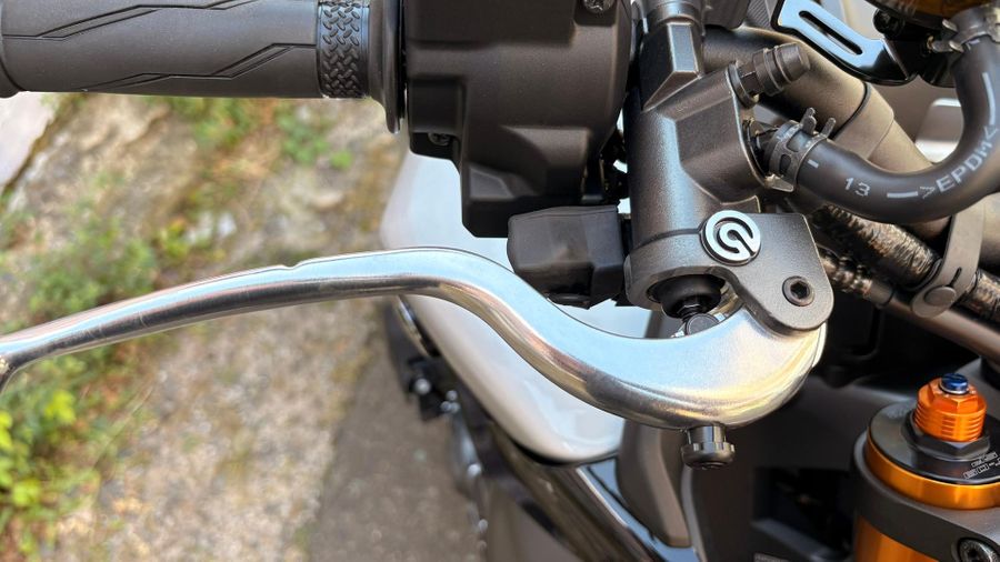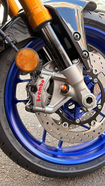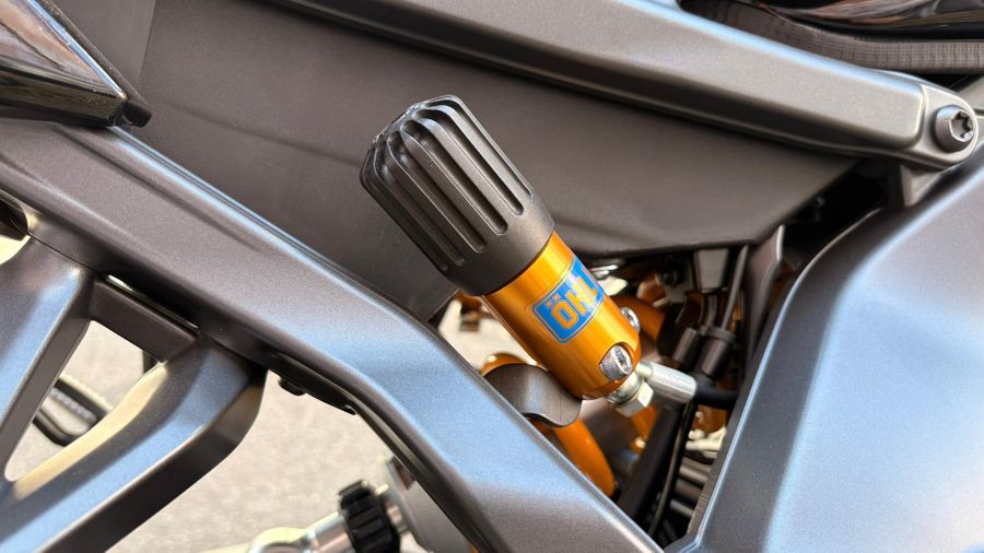 The SP-exclusive DLC-coated 41mm KYB gold front forks are paired with the fully adjustable Öhlins rear shock for the most refined Hyper Naked riding experience yet.