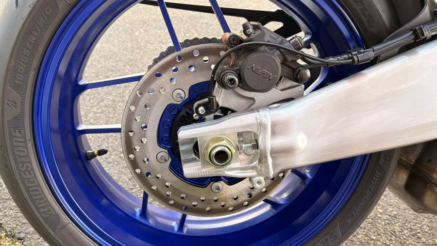 The exclusive R1M inspired look and premium features including a brushed aluminium swingarm, exemplify the SP quality, while the new Smart Key System marks a new step in technology for the Hyper Naked range. - Motorbike